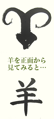 金文が使われていたころ、中国の人たちにとって羊は食糧でもあり、大切な生き物でした。ですから羊には「めでたい」「豊か」という意味もあり、「祥」「善」「鮮」といった多くの漢字が「羊」から生まれました。みんな、羊の家族たちです。
