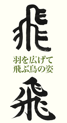 上の文字をよくてください。とり左右さゆうはねおおきくひろげ、んでいる姿すがたあらしています。南米なんべいペルーの「ナスカの地上絵ちじょうえ」にもよくた絵がありますね。「飛」という漢字は、ものかたちをかたどってできた象形しょうけい文字なのです。