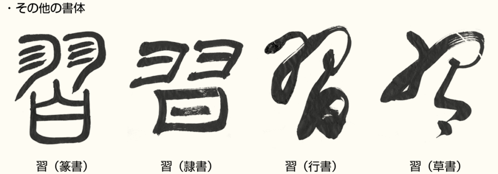 中国の古い漢字の書である「設文解字」でも、「習」という漢字について「しばしば飛ぶなり」とあり、ひなどりが巣立とうと羽を繰り返し動かしているさまだと言っています。「習」は学ぶことに前向きで強い意志を持った漢字なのです。