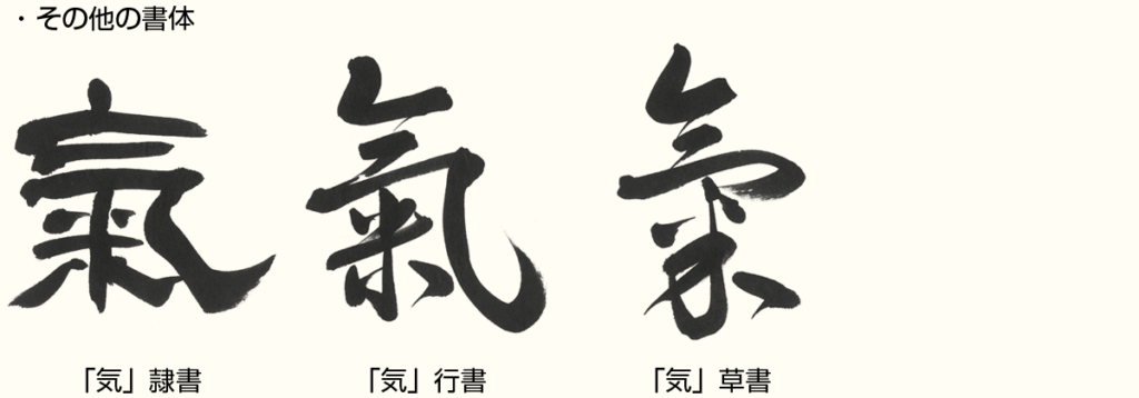 上の文字は「気」の金文です。气は空に浮かぶ雲の象形。米はエネルギーを四方八方に放出するさまを表しているという説と、稲穂、つまり米を表しているという説があるようです。いずれにしても「気」が生きる力、活動力の源であることは、「気力」「気合」「根気」「勇気」といった熟語をみてもわかるでしょう。