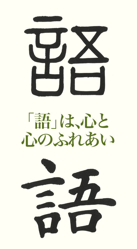 「言」はふるくはかれ、心のこえくちからることを意味しました。心と声が一致いっちしないとぶんかざることになり、誠実せいじつからはとおざかります。「語」とは心と心のふれあい。そこから「しん信頼しんらい)」がまれるのです。「げん」「けい」「こく」などで使われます。