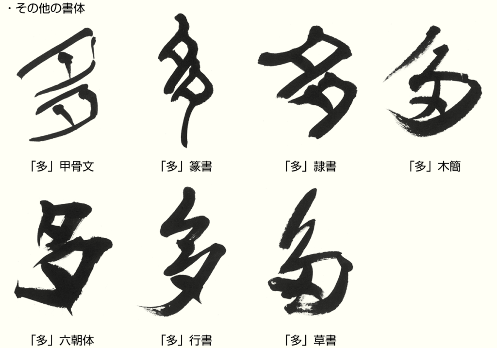 「多」は「夕(にく)」と「夕(にく)」とを合わせた字。「夕」は夕月ではなくて、切った肉の形だよ。神様にお供えする肉がたっぷり重なり合った様子を表していて、たくさんあるという意味の、多いということを言うよ。