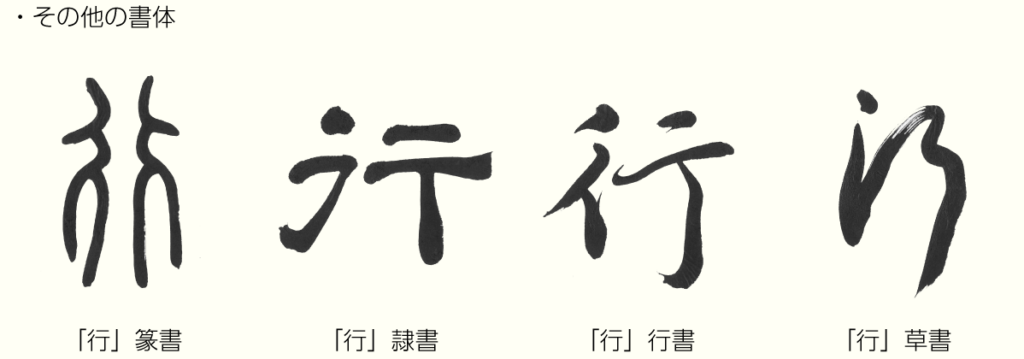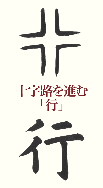 「行」は甲骨文や金文でわかるように、十字路の象形で、「みち・いく」の意味を表し、別に「整った列」の意味があります。