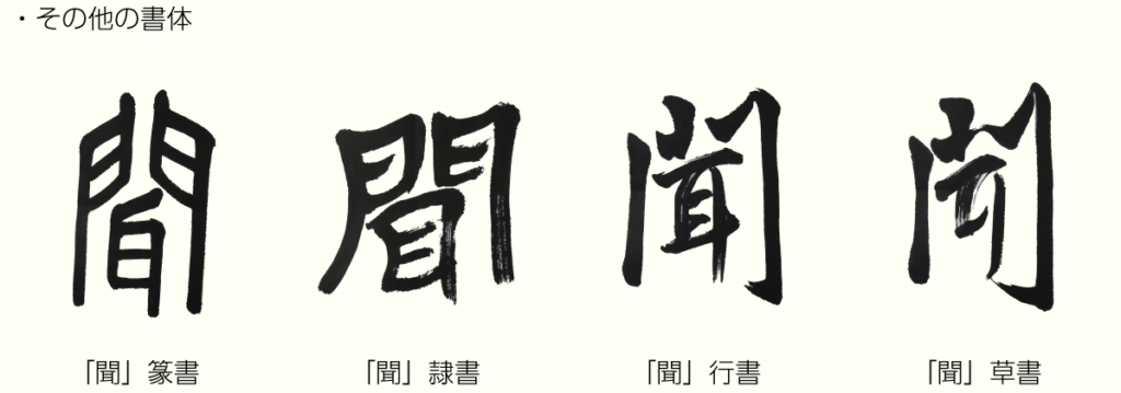 ここには「門」の文字は使われていません。「門」のついた「聞」という字が使われるようになったのは、戦国時代(紀元前450年代から紀元前250年代)ころからと言われています。戦後の世ですから「門の外から聞こえてくる音をしっかり耳でとらえる」という意味で使われるようになったようです。