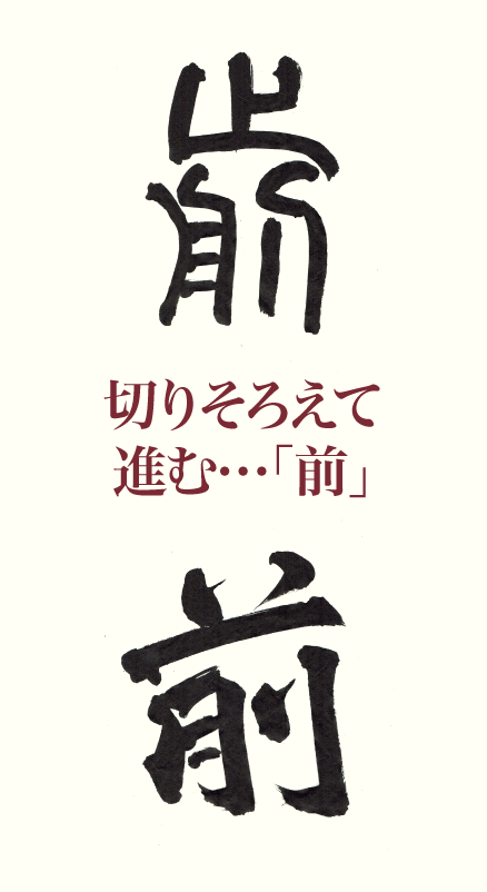 「前」の古い字形は、舟のへさきを揃えて前に進む様子を表す「歬」(せん)でしたが、やがて「歬」に「刂(刀)」を添えて、切りそろえる意味になりました。その後、「先に進む」の意味が強くなり、「切りそろえる」の意味は、「剪」などに受け継がれています。夏から秋は旅行シーズン。不慣れな土地こそ安全確認を心掛け、楽しい思い出を作りましょう。