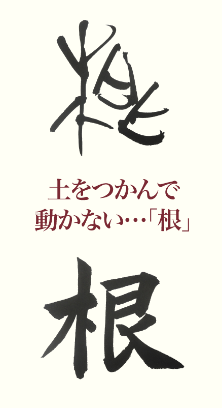 さらに、根は草木を大きく成長させる「もと」だから、「根本」「根源」とも使われる。木の幹や枝を支えるもの…それが「根」なんだよね。