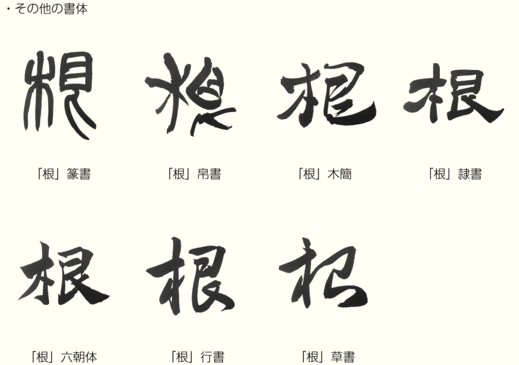「根」は、草木を表す「木」(きへん)と、「艮」(こん)の組み合わせ。上の甲骨文を見ると、右側は「
