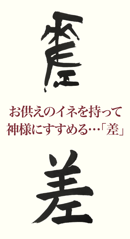 本日ほんじつ扱あつかう漢字かんじは「差」。左ひだりの金文きんぶんをみると、稲いねなど穀物こくもつの穂ほの形かたちの「禾」(か)と、「左」(左手て)を組くみ合あわせた形だよ。お供そなえの稲を持もって、神様かみさまにすすめることが、「差」の元々もともとの意味いみなんだ。穂の長ながさは不揃ふぞろいなので、手で支ささえると凸凹でこぼこした状態じょうたいになり、やがて「そろわない」「ちがい」の意味の「誤ご差」「時じ差」と使つかうようになったんだ。また、「差す」とも使う。前回ぜんかい取とり上あげた「参さん」にも不揃いの意味があったよね。「参」と「差」を組み合わせて「微妙びみょうに違ちがう」という意味の「参差」という言葉ことばができた。読よみが難むずかしいけど、「しんし」だよ。これもぜひ覚おぼえて、友達ともだちに差をつけちゃおう!