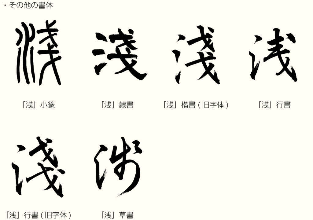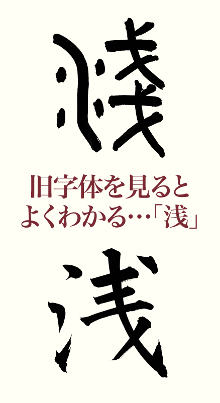 (氵)」が付くことで「水が少ない」から「浅い」という意味になったとされています。このように、旧字体を分解していくと、漢字の意味がよくわかりますね。
