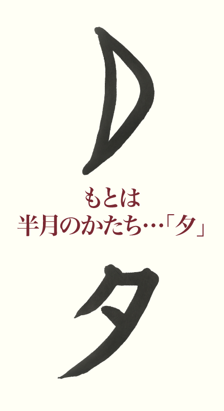 音である「セキ」は、月光の白で、夜と同じ意味を持ち、月と夕を区別するために一画を加えたものを「月」とし、そのままの形のものを「夕」としたのです。