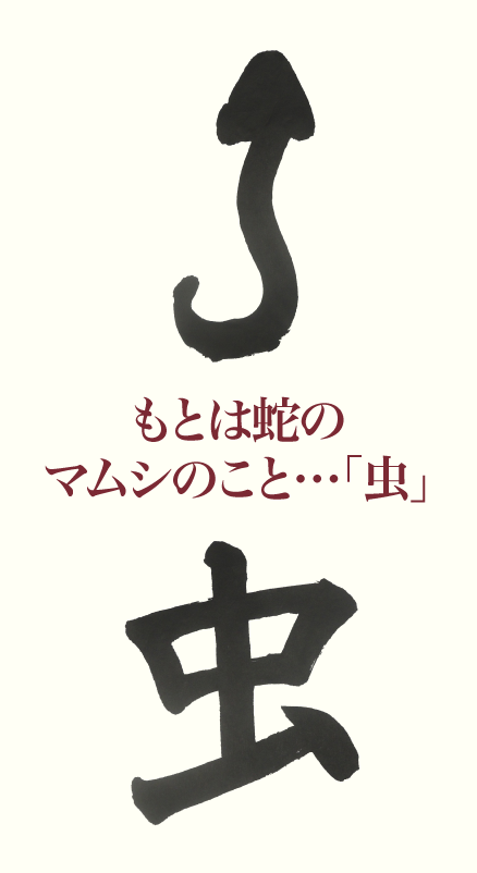 蛇の意味だった「虫」が、いつしか昆虫をすようになって、蛇より小さい虫を指す「」ができ、さらに小さな虫を「ちゅう」と呼び、区別くべつしていました。