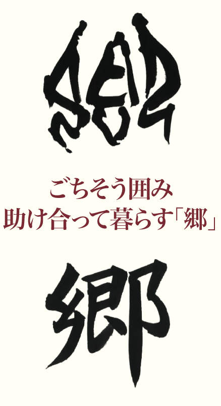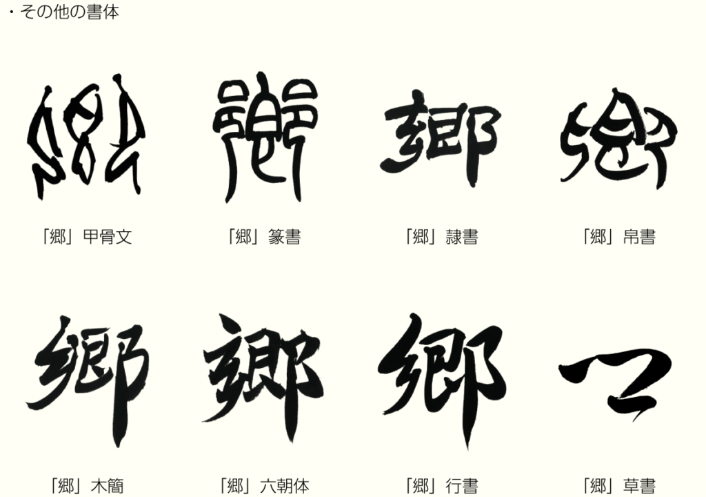 」(屈んだ人の姿)の人の住む「さと・むら」を加えた「郷」の字が作られた。