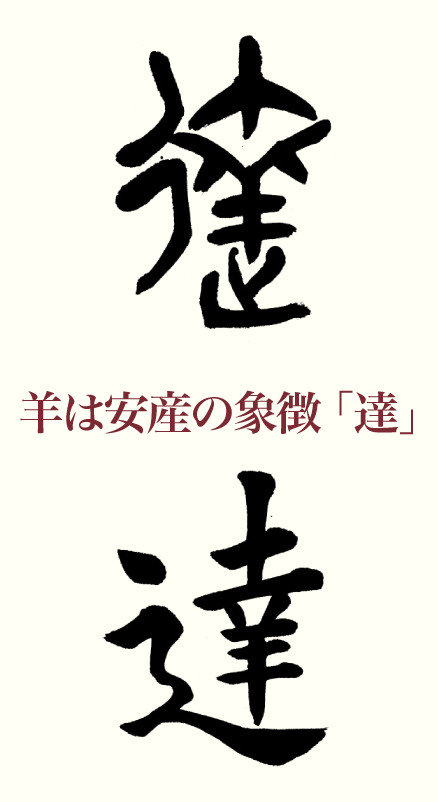 達は、「土(大)」「羊」「辶」から成ります。羊の体を正面から見た姿すがたを表す「羊」と、羊の腰を表す「大」を組み合わせて「美」ができましたが、「羍(タツ)」は、母羊の後ろを見て腰(大)から子羊がすべり出るように誕生たんじょうする様子を表しています。さらに、「辶」がなめらかにいきおいよく生まれることを強調しているのです。