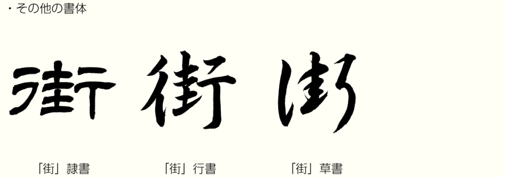 漢和辞典で調べると、「街」は、「行」というところに分類されています。「術」や「衝」なども同じところに分けられ、この「行」の部分を「ゆきがまえ」、あるいは「ぎょうがまえ」と呼んでいます。