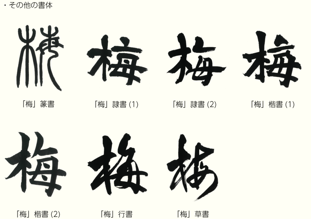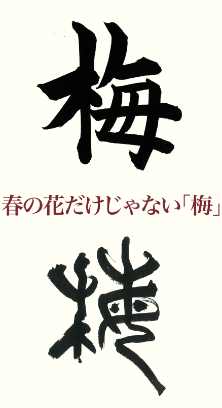 「梅」は沢山実をつけ、中国では古くから薬として、妊婦を助けることから縁起の良いものとされていたようです。さらに、草木が茂る意味から美しく茂る木「梅」を意味することで漢字が成り立ちました。