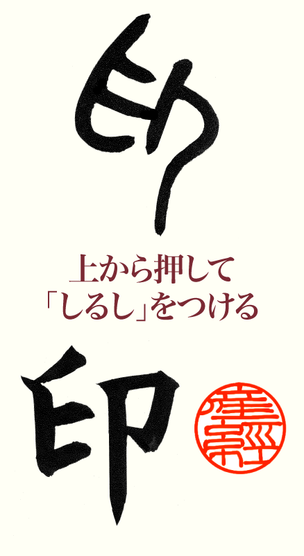 小学校4年で習う漢字、「印」についてお話ししましょう。「印」という字は、二つの部分から成り立っています。左側は手を、右側は人がひざまずく形を表しています。これは人を手で押さえつけてひざまずかせる姿を描いた形です。そして後に上から押さえつけて「印をつける」または「はんこ」の意味に使われるようになりました。