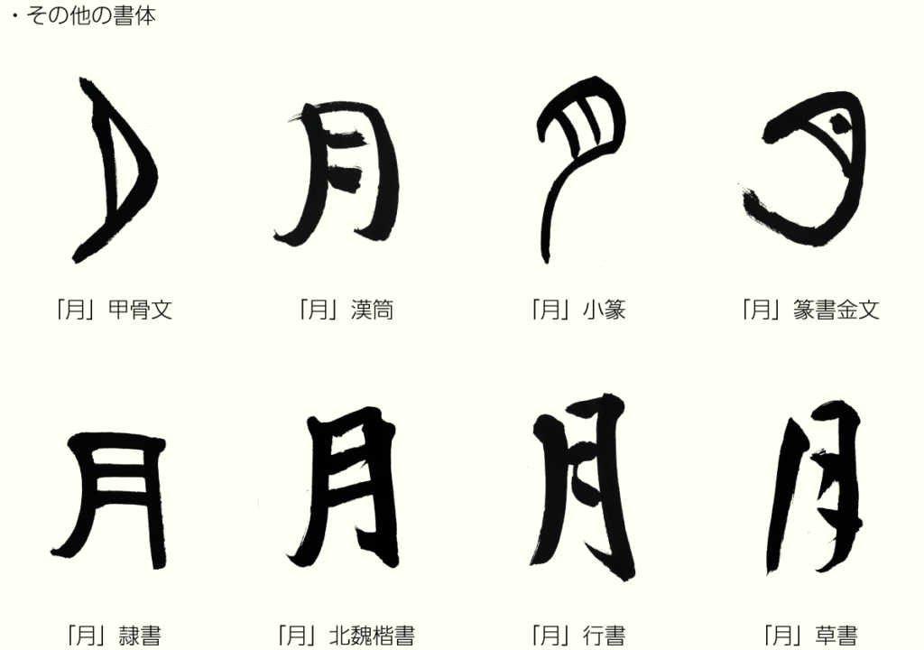 「月」は満月が欠けて三日月となった形からきた象形文字で、天体の「月」を表します。