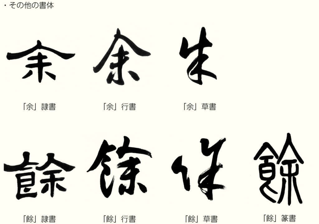 「餘」の「食」は食べ物、「余」は満ちている意があるといわれ、説文解字せつもんかいじ(最古の字書)では、「あおきなり」と説いていて、食べても余っている食物のことを言い、あまる・あまりの意味になりました。