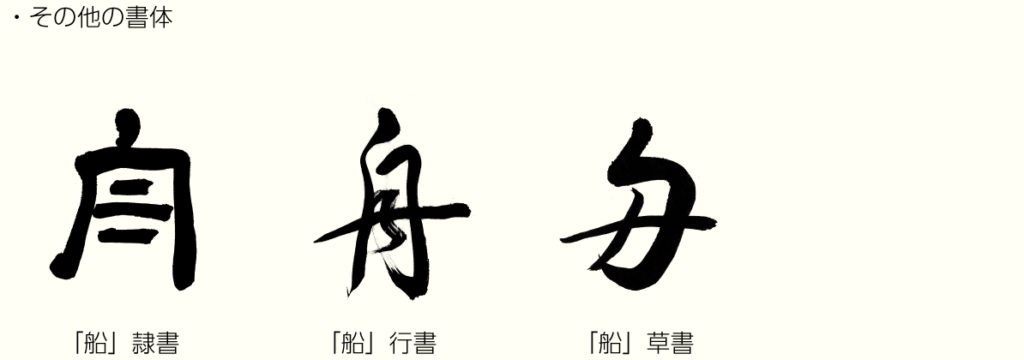 」と書き、篆書では一本の木をくりぬいて作った「丸木舟」の形を表す「