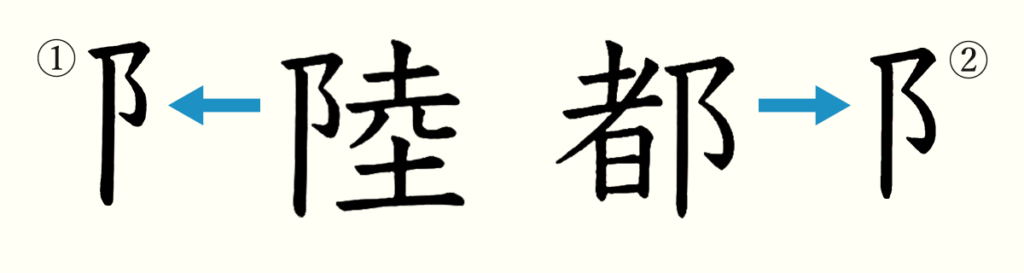 それは文字の成り立ちに違いがあるからです。「陸」などのへんであるこざとへんは「阜」という字が変化したもので、土を盛って小高くした山を表しています。