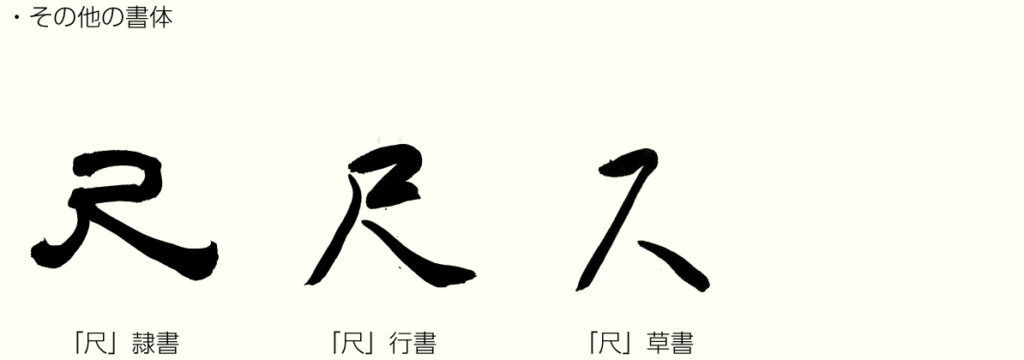 」と書きます。左のタテは親指、右のタテは残りの4本の指をまとめた形で、上方の長いものは腕を表しています。定規のない時代は親指と残りの指の間を伸縮させ、長さを計ったのです。ちなみにこの指の動きによく似た虫を尺取虫といいます。