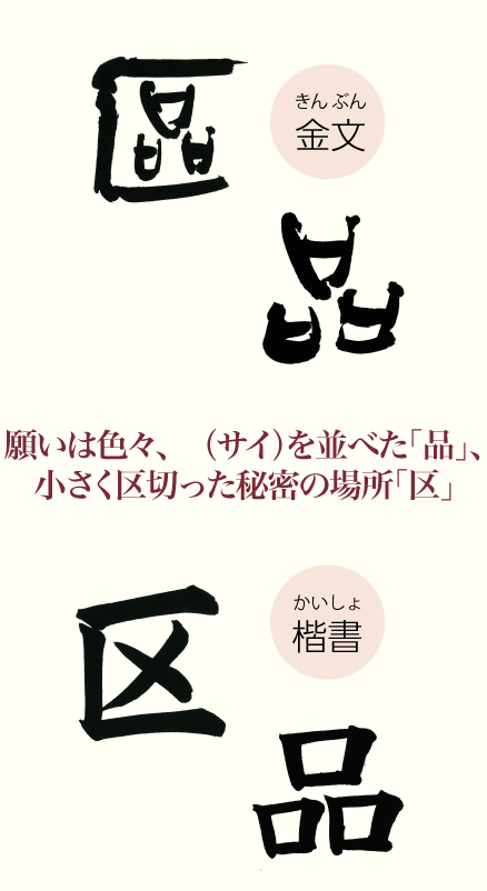 願いは色々、口(サイ)を並べた「品」、小さく区切った秘密の場所「区」