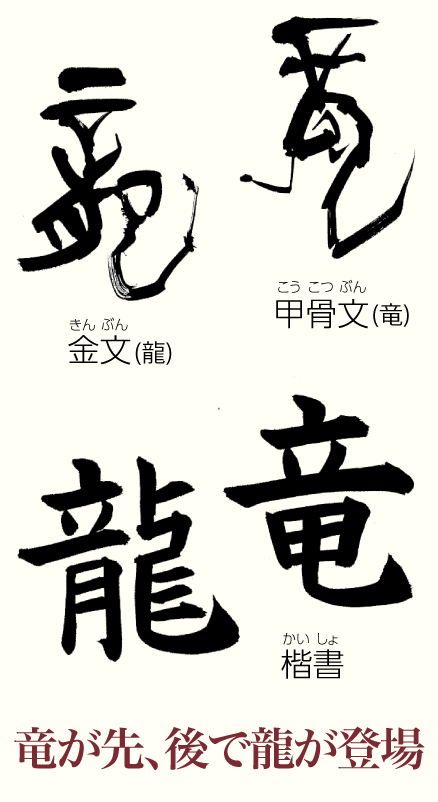 その後、「竜」にはいろんな装飾模様が加わり、甲骨文の後に出てきた金文で「龍」が使われることになったようだ。