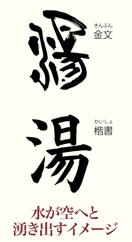 寒くなってくると、やはり温泉が恋しくなりますね。今回は温泉や風呂、温かい水などを意味する「湯」を見てみましょう。