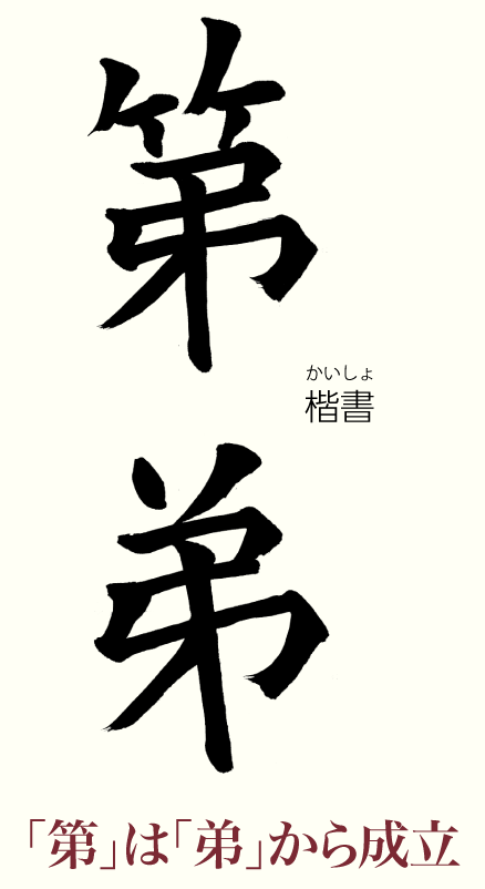 14日から東京・上野の東京都美術館で、産経国際書展がスタートします(21日まで)。今年は第41回。今回は、「第」や下部の字形が同じ「弟」を見てみましょう。