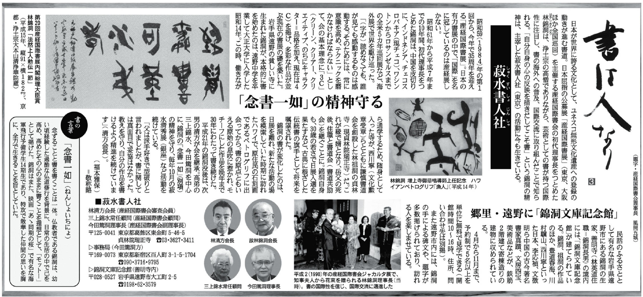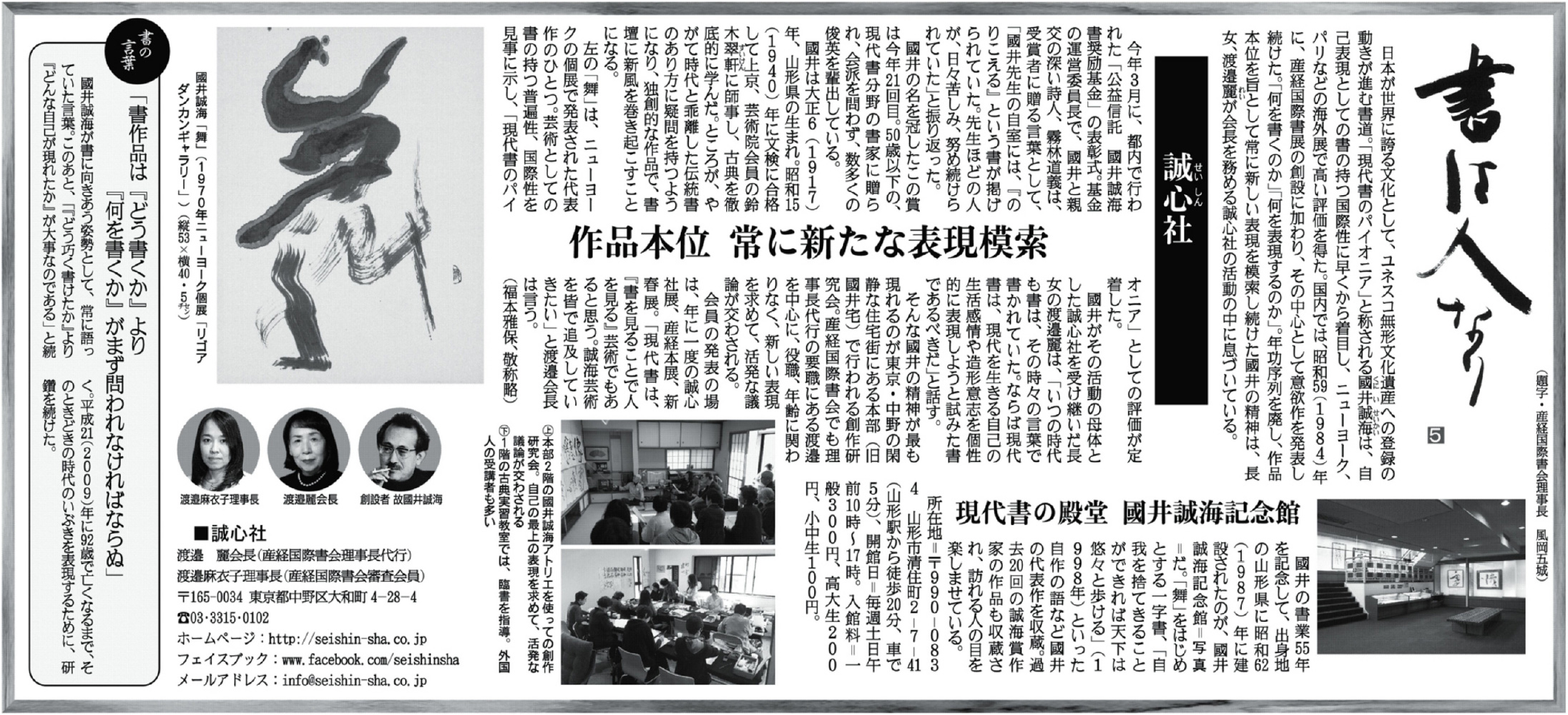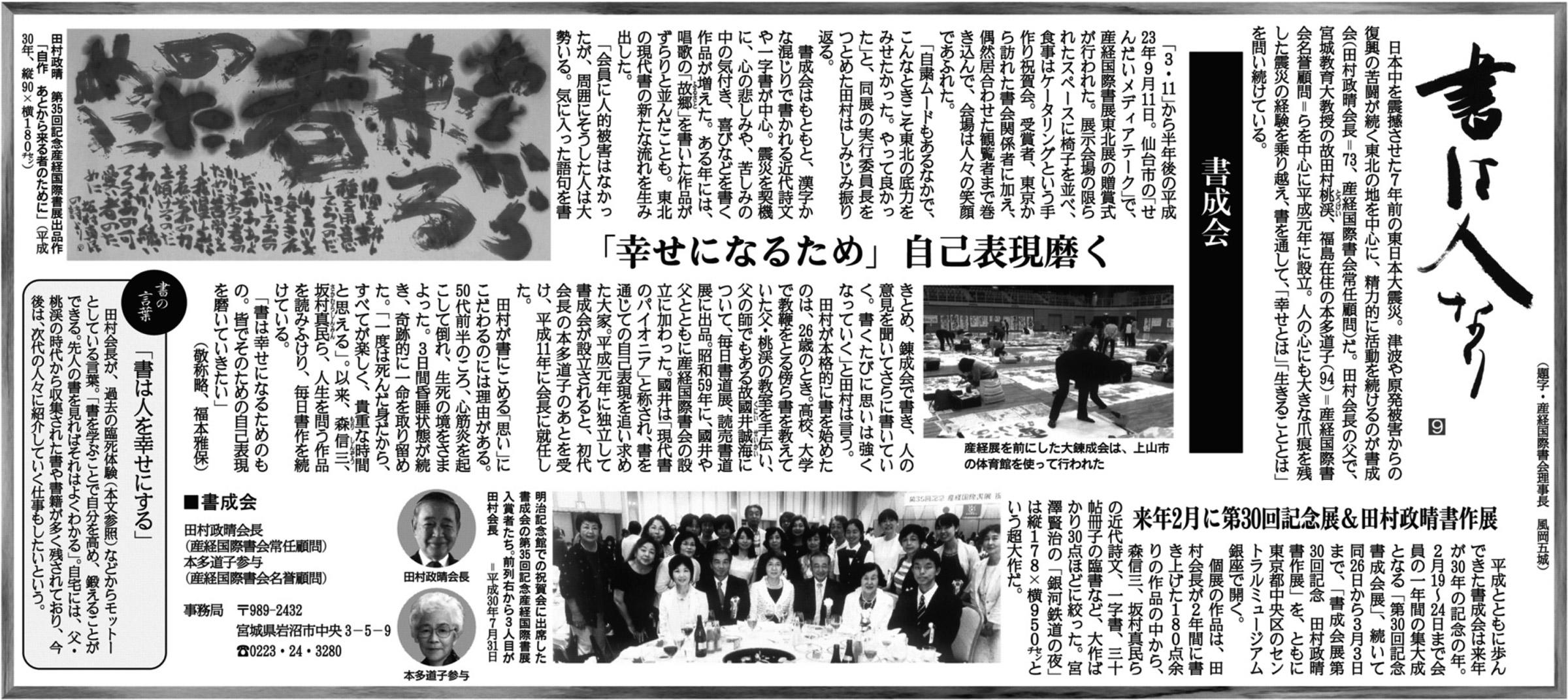 書成会 (産経新聞東京朝刊 2018/09/29)