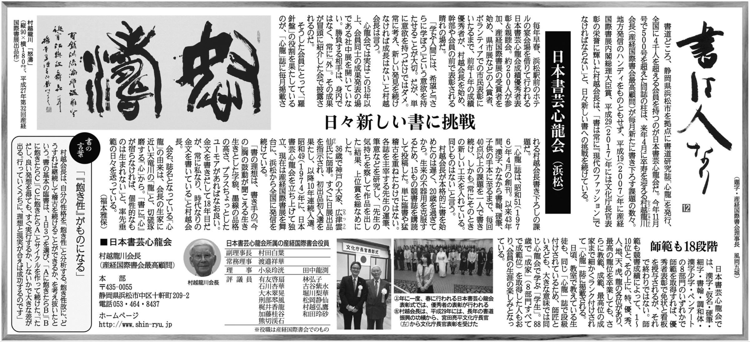 日本書芸心龍会 (産経新聞東京朝刊 2018/12/30)