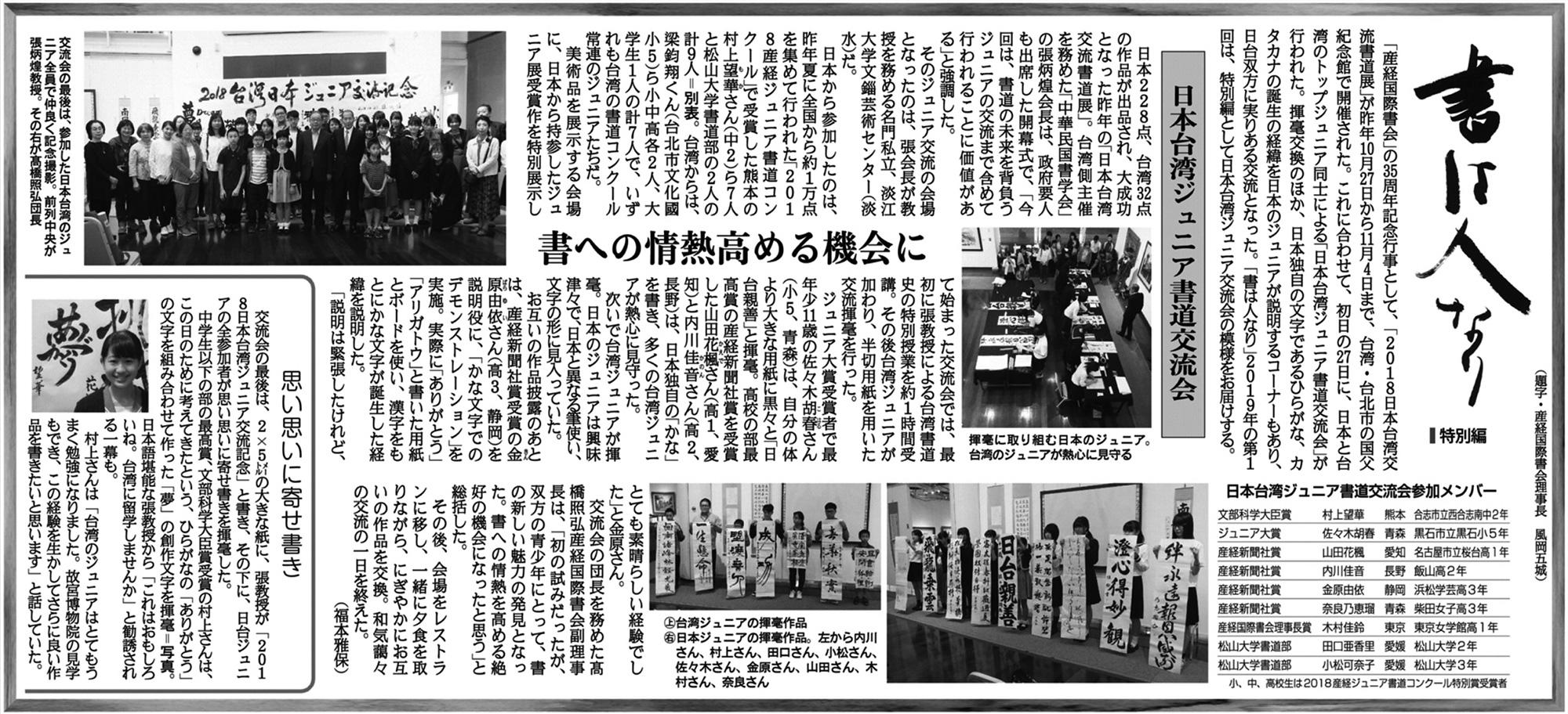日本台湾ジュニア書道交流会 (産経新聞東京朝刊 2019/1/31)