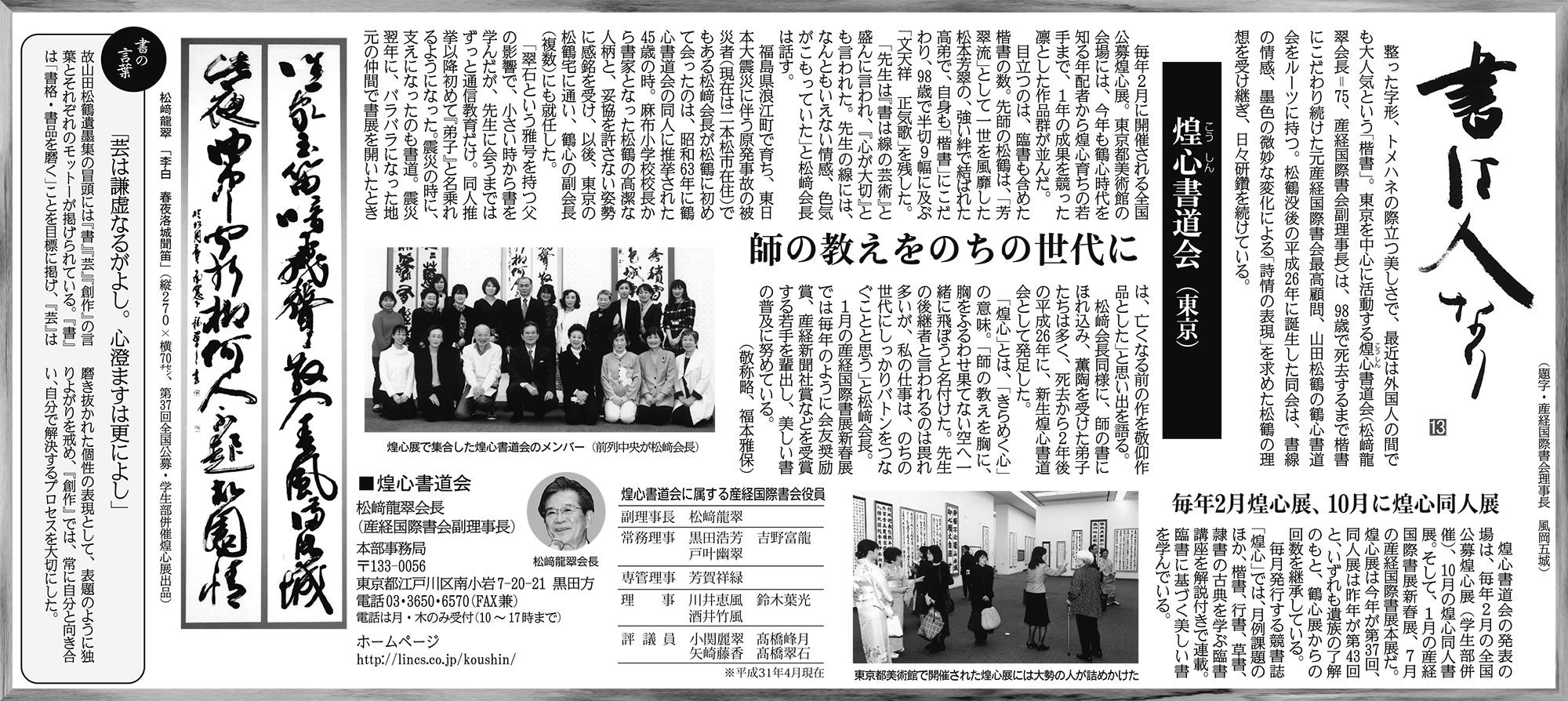 煌心書道会 (産経新聞東京朝刊 2019/2/27)