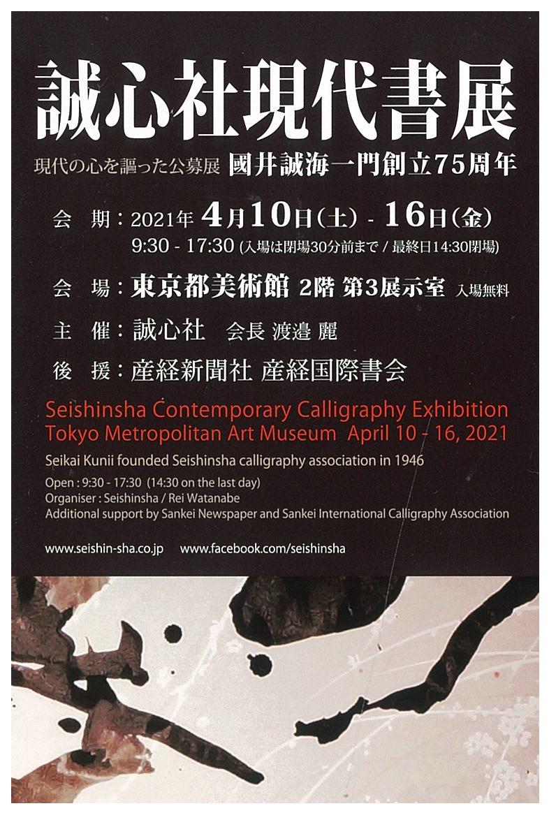 | 展覧会名 会期 会場 団体・代表名 | 誠心社現代書展 4月10日(土)~4月16日(金) 東京都美術館 誠心社・渡邉麗 |