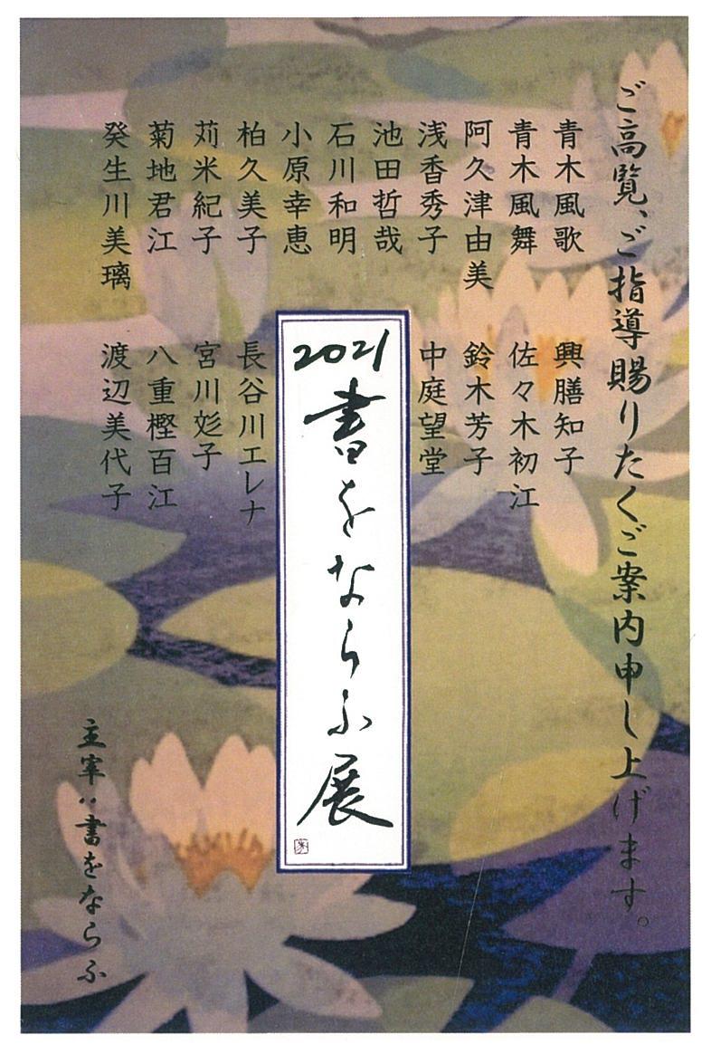 | 展覧会名 会期 会場 団体・代表名 | 2021 書をならふ展 6月10日(木)~13日(日) Gallery鶉(じゅん) 東京・目白 書をならふ・浅香秀子 |