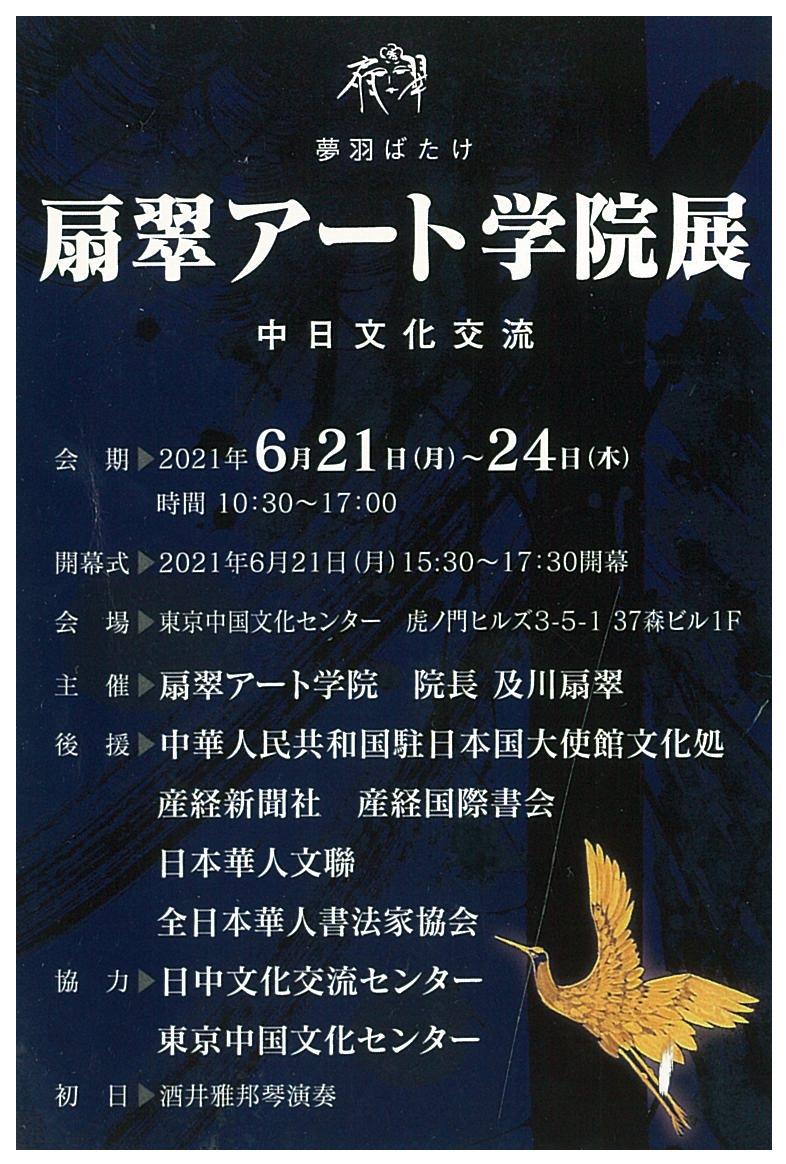 | 展覧会名 会期 会場 団体・代表名 | 扇翠アート学院展 6月21日(月)~6月24日(木) 東京中国文化センター 扇翠アート学院・及川扇翠 |