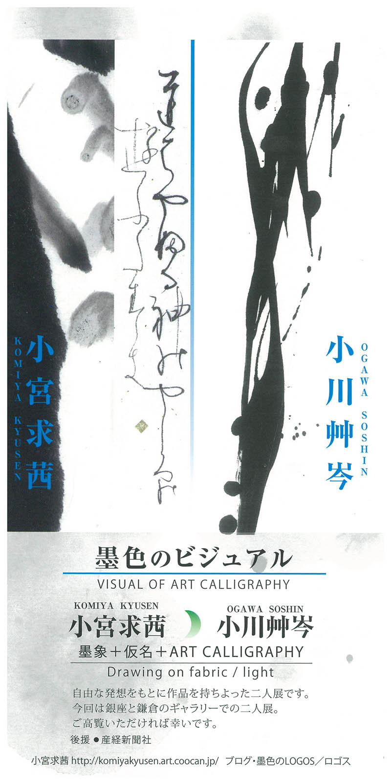 | 展覧会名 会期 会場 団体・代表名 | 墨色のビジュアル二人展 12月22日(金)~12月27日(水) 鎌倉芸術館ギャラリー 小川艸岑 |