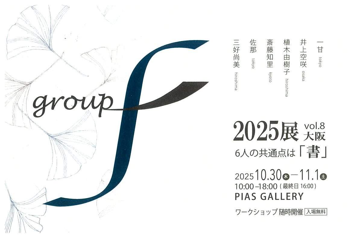 | 展覧会名 会期 会場 団体・代表名 | groupf 2025展 vol.8 大阪 ~新たな可能性を求めて~ 10月30日(木)~11月1日(土) 大阪市北区・PLAS GALLERY groupf・井上空咲 |