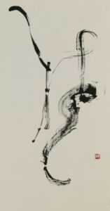 結婚後に、書展で見た作品に感動して桑原江南氏に師事。どこをどう直すべきか、言葉では何も教えてくれない厳しい師だったが、「真剣に書と向き合って、自分で勉強しないと身につかないということを教えられた」と振り返る。