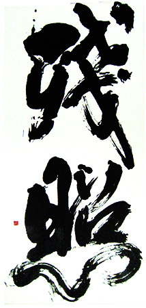 だがそれ以上に難しかったのが自分の書作りだ。師の顔がちらつき、苦しみながら書いてきた。だがいまは違う。自分の思いを素直に出す。新春展の出品作「残照」がそうだ。自宅マンションから見える夕日の燃えたぎる熱さを久保は書にした。紙幅からあふれんばかりの濃墨の作品は、沈む夕日は寂しいものではなく存在感あるものとして迫ってくる。そして久保はいま以上に上を目指す。「まだ伸びる。書ける間はまだ伸びしろがある」。そう信じている。(柏崎幸三)