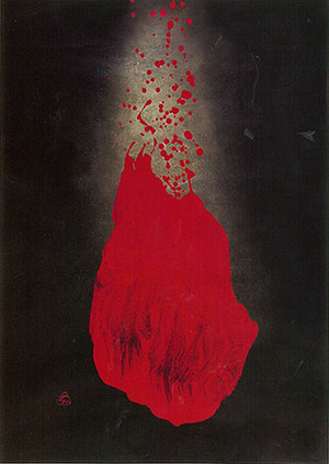 「構想は時間をかけて練るが、作品は一瞬にして仕上がるので偶然の産物」と謙虚に語るが、この人の作品は強烈なインパクトを与える。前衛書ならではの「色」を大胆に使った「点の心象」シリーズ(9作)は、代表作の一つとなっている。
