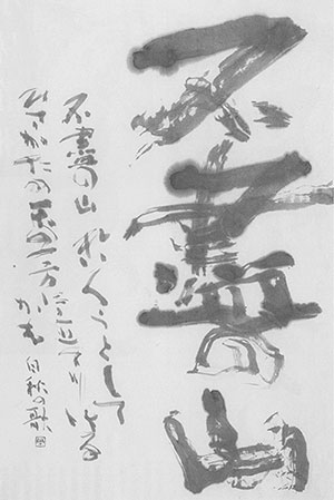 「気に入った作品はなかなか書けない」としながらも書作では、「言葉と、その意味するものの立体的な表現を目指し、文字と余白の『凝縮と広がり』が大切」と話す。