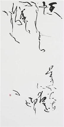 大胆で自在な「散らし」は、この人独自の持ち味だ。素材は近代詩から選ぶことも多い。