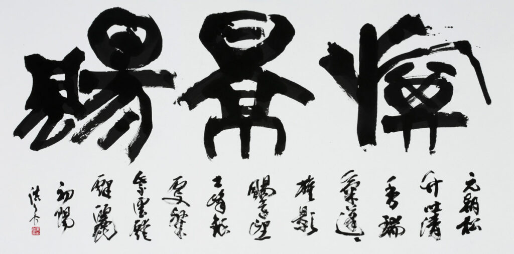 1月開催の第30回産経国際書会代表展に出品したのは、富士山を「お題」に競作した漢詩を書いた自詠自書の作品。「旗影颺(きえいひるがえる)」は、元旦の朝に国旗がひるがえり、富士山が綺麗だ、というような内容という。
