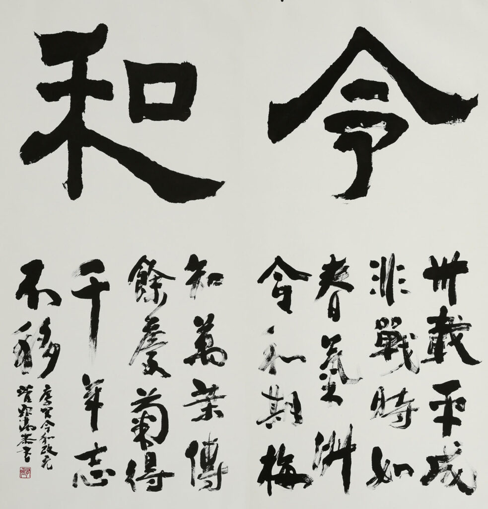所属する全日本漢詩連盟会長、石川忠久氏(二松学舎大元学長)の呼びかけで詩友100人とともに令和の始まりを祝う漢詩を競作した「新元号令和慶祝詩集」を昨年12月に出版。22日から東京・六本木の国立新美術館で始まった「第36回産経国際書展新春展」で、さっそく自作を作品として書き上げた。