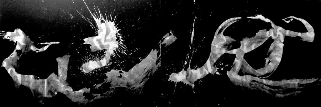 自身が向き合うのは、線の芸術ともいえる墨象(ぼくしょう)。前衛書を、「分かりにくい」という人もいるが、「墨象は心の律動を瞬時に姿に表しているのです。そこから何かを感じることが最も大切」と強調した。